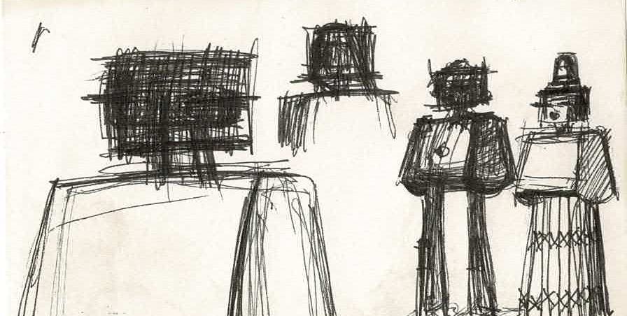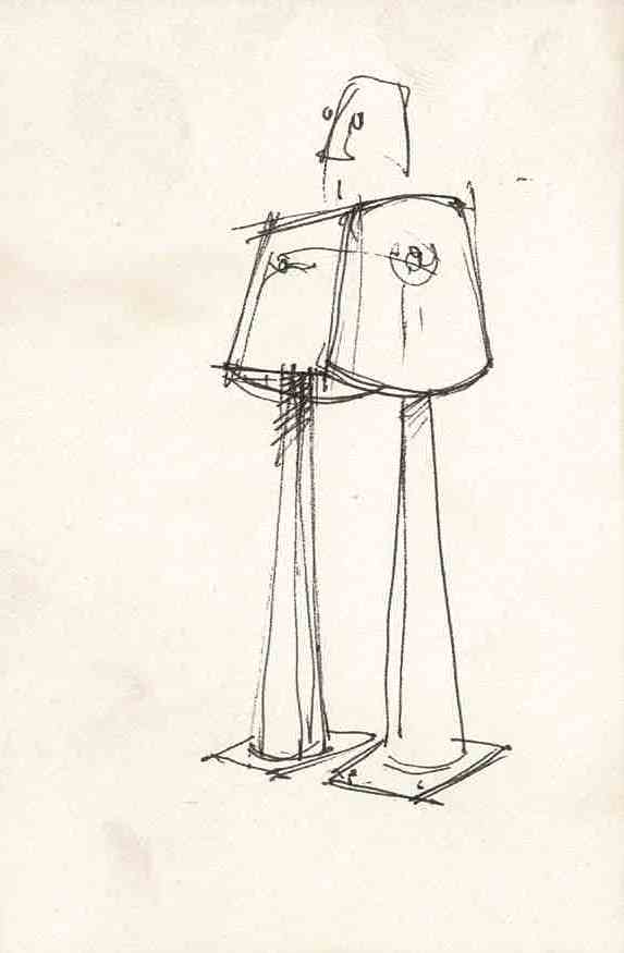 “Conjunto de duas esculturas realizadas com elementos diversos respigados da sucata existente nos estaleiros da Câmara Municipal da Amadora. Houve uma intencionalidade marcada de evidenciar o elemento “contentor de lixo” enquanto metáfora irónica do nosso tempo, de muita arte do nosso tempo e das minhas próprias tendências de expressão plástica.