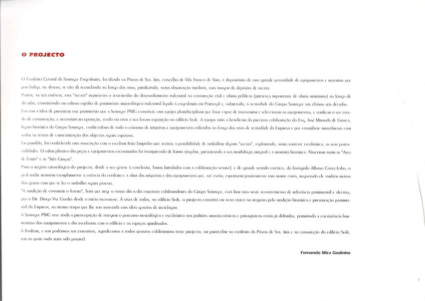 Este núcleo foi realizado por encomenda da Somague – Construção Civil e Obras Públicas, para os jardins da sua sede.”