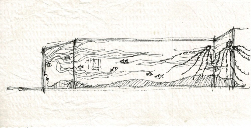 Os elementos tridimensionais foram todos montados sobre a madeira que cobria inteiramente as paredes. Foi necessária uma grande atenção aos aspectos funcionais do espaço – bar de hotel – cuidando de que nada representasse algum perigo ou inconveniente para os utentes.