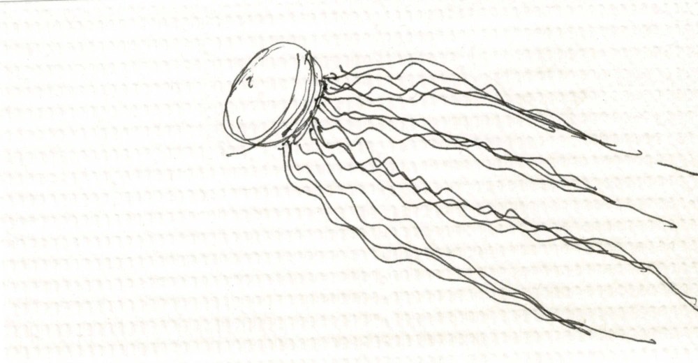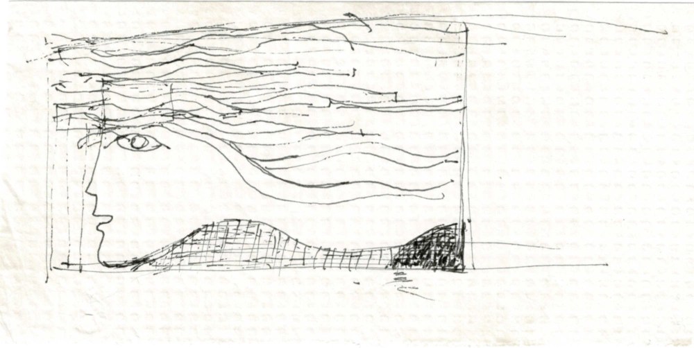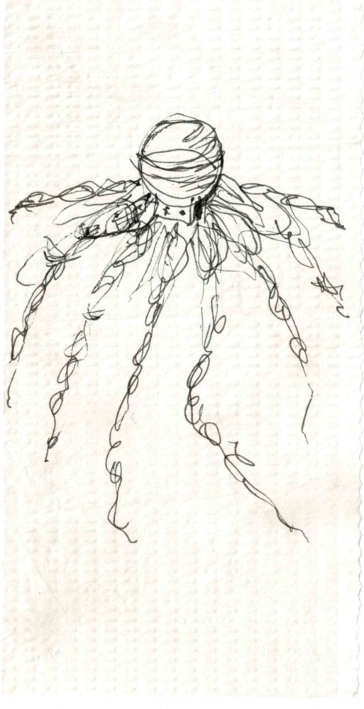 “Este conjunto foi realizado recorrendo a objectos perdidos variados, articulados com grandes tiras de chapa zincada e chapa de aço inoxidável que formam longas sequências, sugerindo cabelos, ondas, algas…