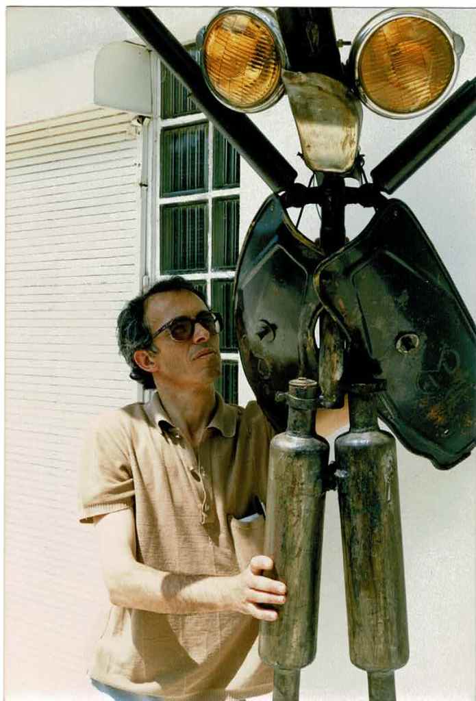 “Escultura realizada com diversas peças de automóvel, motociclo, etc. A atitude ameaçadora é desconstruída pelo efeito humorístico que o reconhecimento dos objectos provoca.